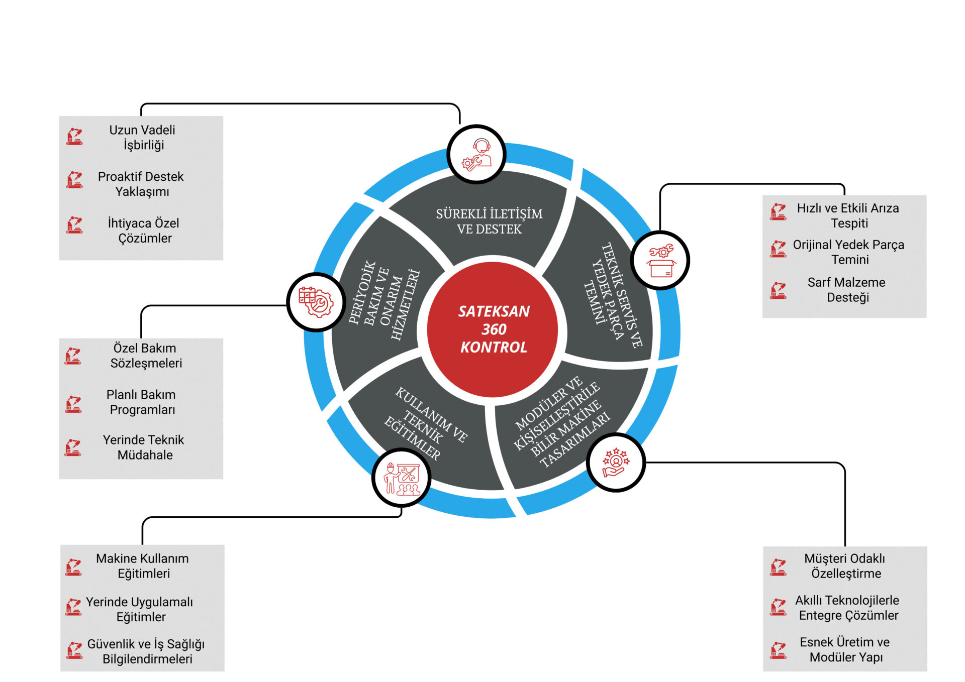 SATEKSAN 360 Kontrol Ekibi olarak en önemli hedefimiz, makinelerimizin yedek parça ve sarf malzeme ihtiyaçlarını en hızlı şekilde karşılayarak kesintisiz ve yüksek performanslı çalışmasını sağlamaktır.