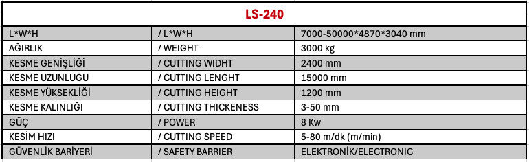 LS-240, uzun metraj sünger bloklarının istenilen kalınlıklarda ince dilimler halinde kesilip rulo haline getirilmesi amacıyla tasarlanmış gelişmiş bir makinedir. İki farklı model seçeneğiyle farklı üretim ihtiyaçlarına uyum sağlar: