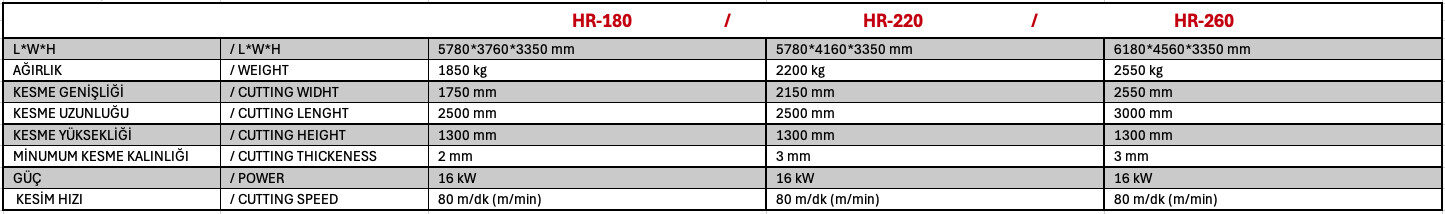 HR-220, 20’den fazla sünger türünü mikron hassasiyetinde kesmek üzere geliştirilmiş, yüksek performanslı bir yatay kesim makinesidir. Operatör panelinden girilebilen veya uzaktan gönderilebilen kesim listelerine göre sünger bloklarını istenilen kalınlıklarda dilimler. Yatay Kesim ailesinin “çalışma alanı tasarrufu” ve “hassasiyeti” bir arada sunan modeli olan HR-220, daha düşük kapasiteli işler için idealdir ve kompakt yapısıyla daha az yer kaplar. Güçlü vakum sistemine sahip kayar tabla ve servo kontrollü şerit bıçak sayesinde PU rebond süngerden medikal sınıf XLPE’ye kadar geniş malzeme çeşitliliğinde homojen ve pürüzsüz kesimler sağlar. Endüstriyel ölçekte üretim yapan firmalar için yüksek tekrarlanabilirlik, kullanım kolaylığı ve kaliteli sonuçlar sunar.